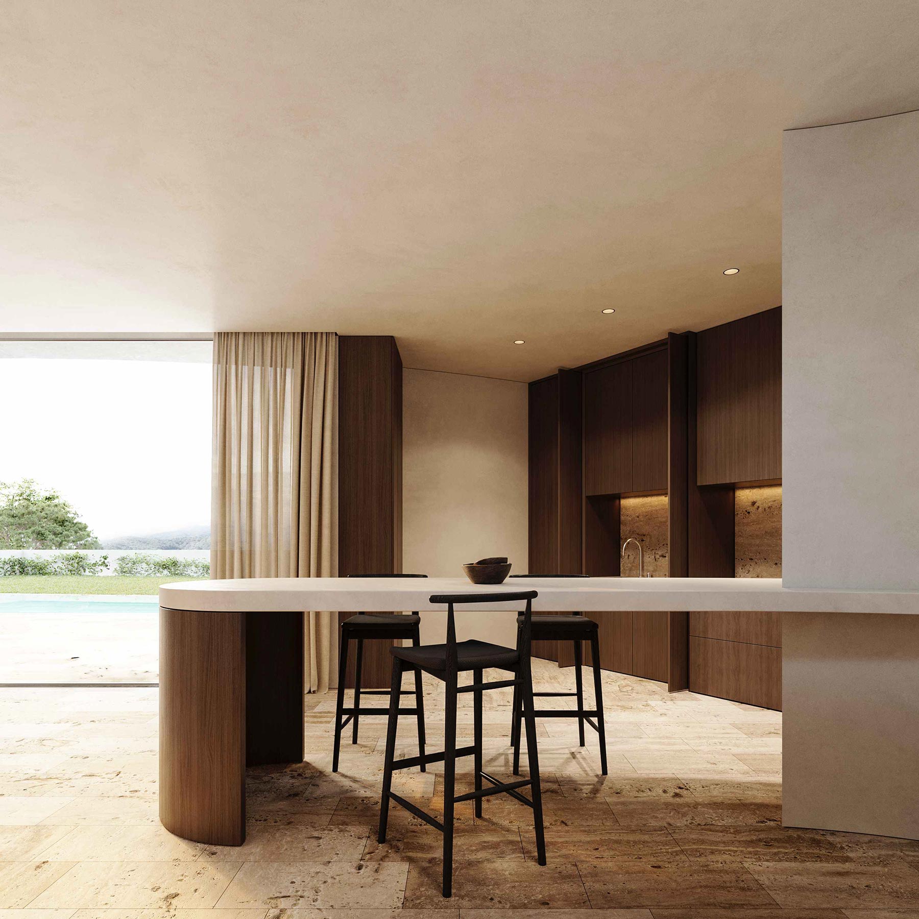 Casa A Costa se materializa principalmente mediante el uso de la madera y la piedra natural, siendo estos dos de los materiales más representativos del estudio. A través de la selección cuidadosa y la aplicación reflexiva de estos materiales Casa A Costa muestra nuestra dedicación a la creación de espacios que no solo sean visualmente atractivos, sino también armónicos con su entorno.