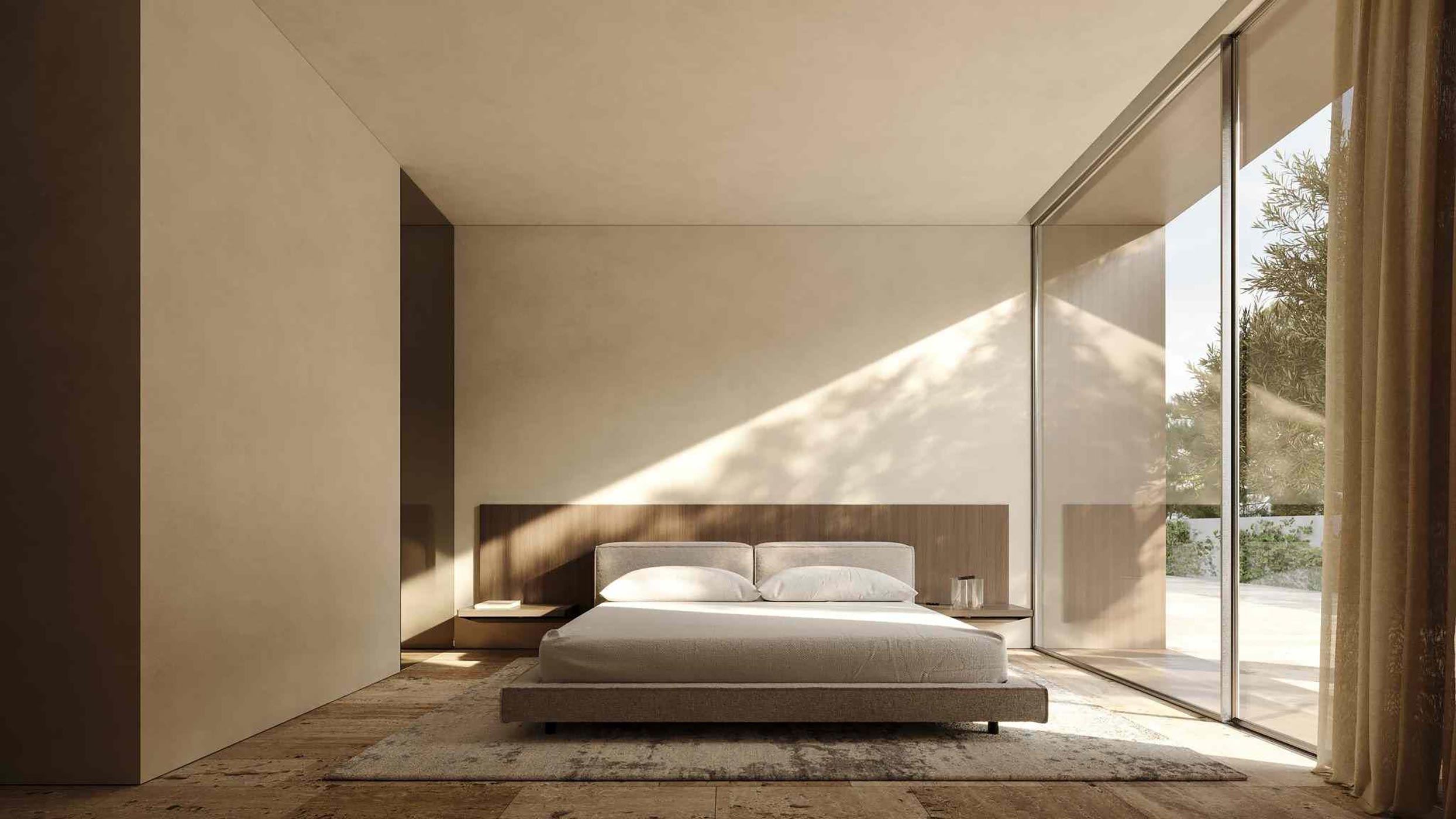 Además, las entradas de luz de la vivienda están diseñadas de manera que, la mayor parte de luz provenga del sur, abriendo la vivienda hacia las vistas. En el resto de fachadas, para evitar las vistas no deseadas y conseguir privacidad, la iluminación se produce a través de patios interiores, filtrando la entrada de luz mediante elementos verticales opacos.