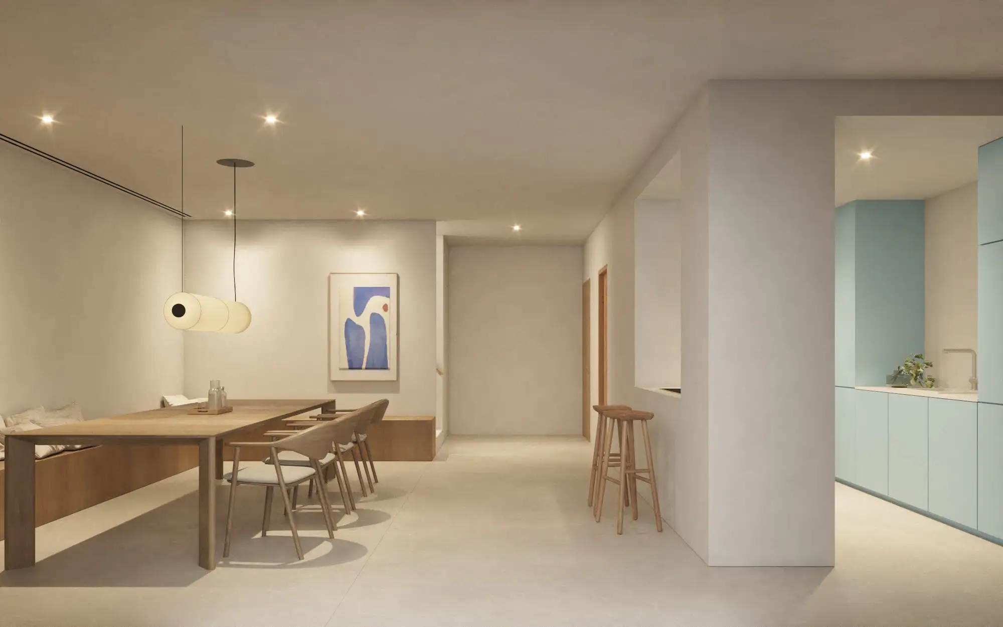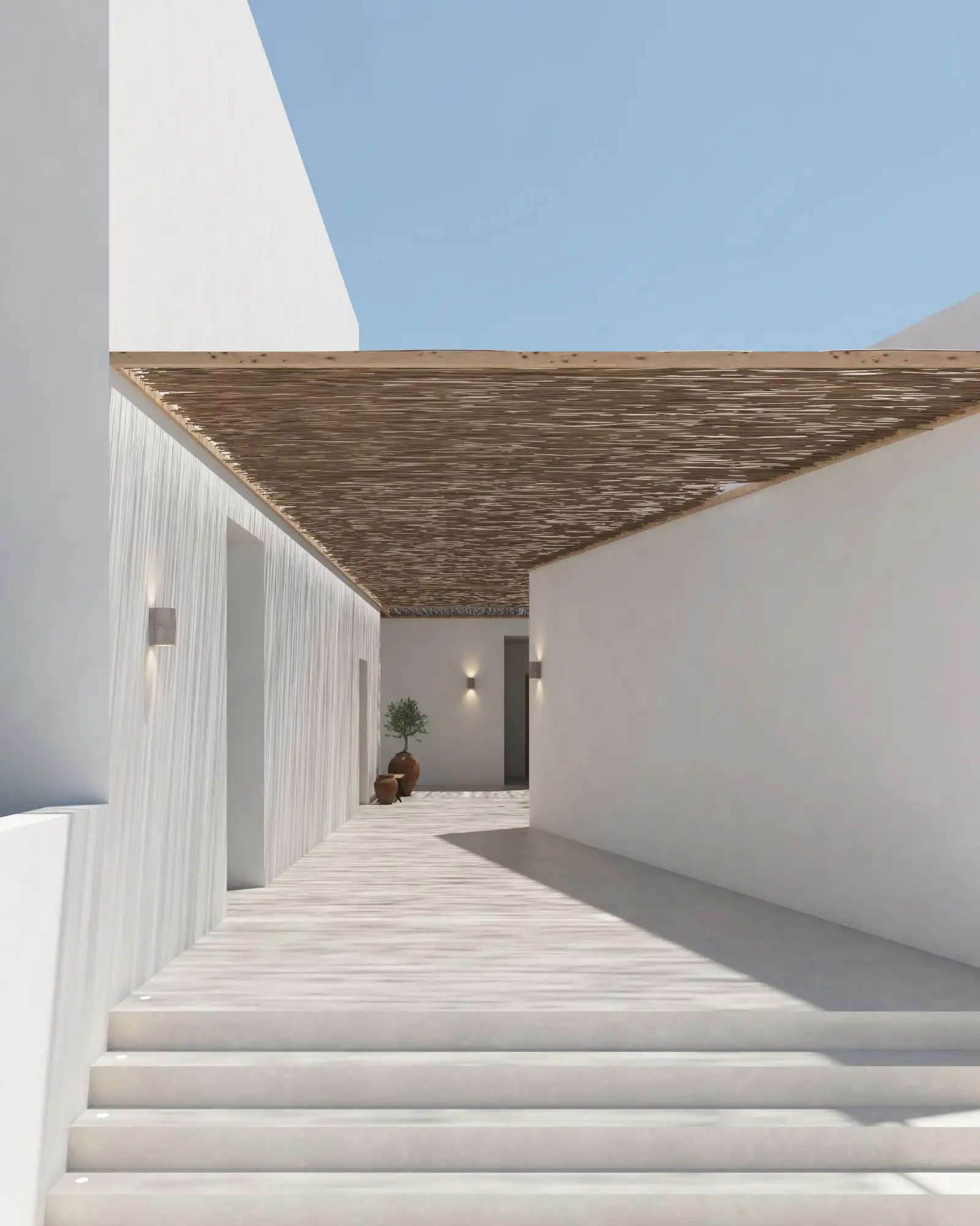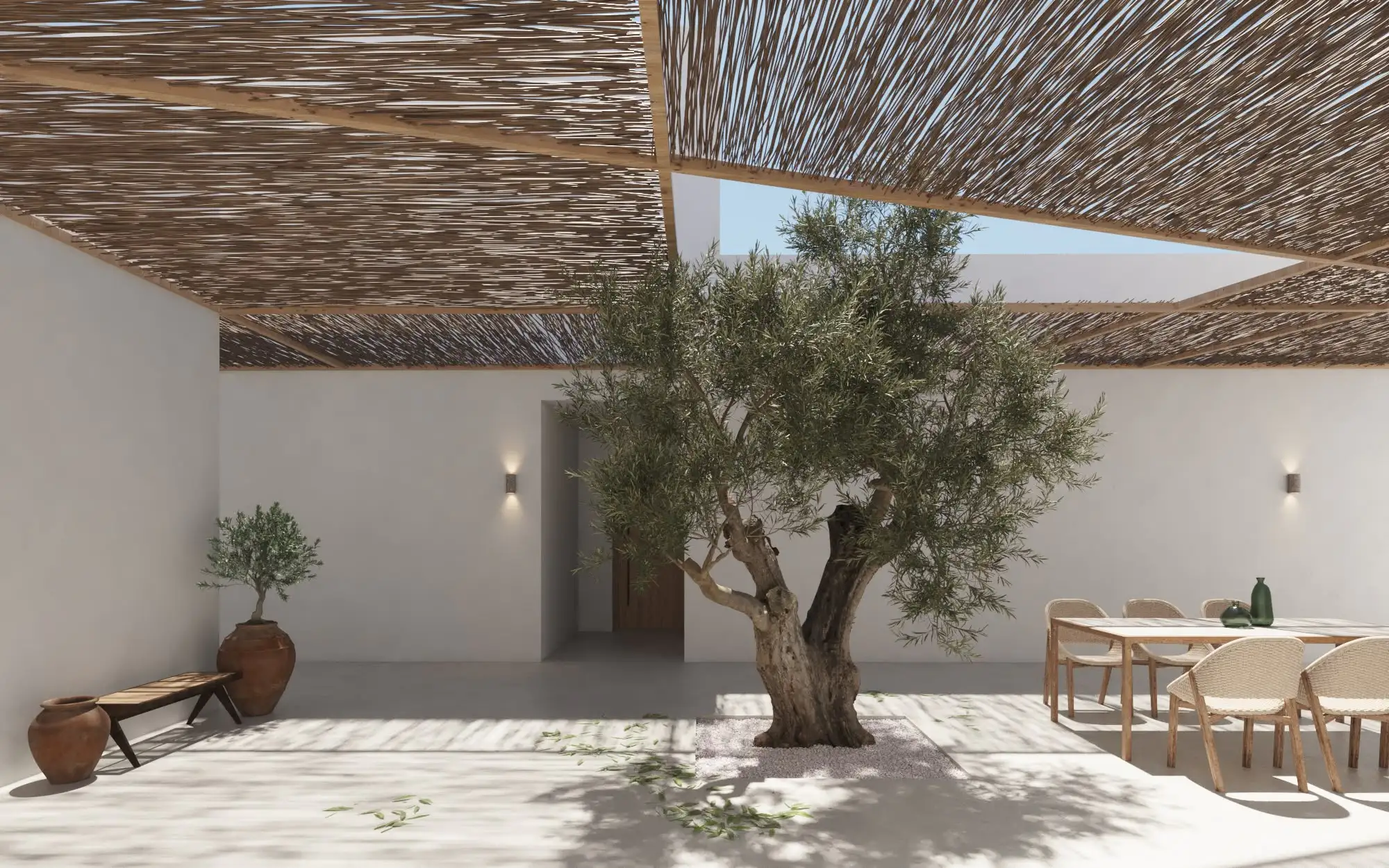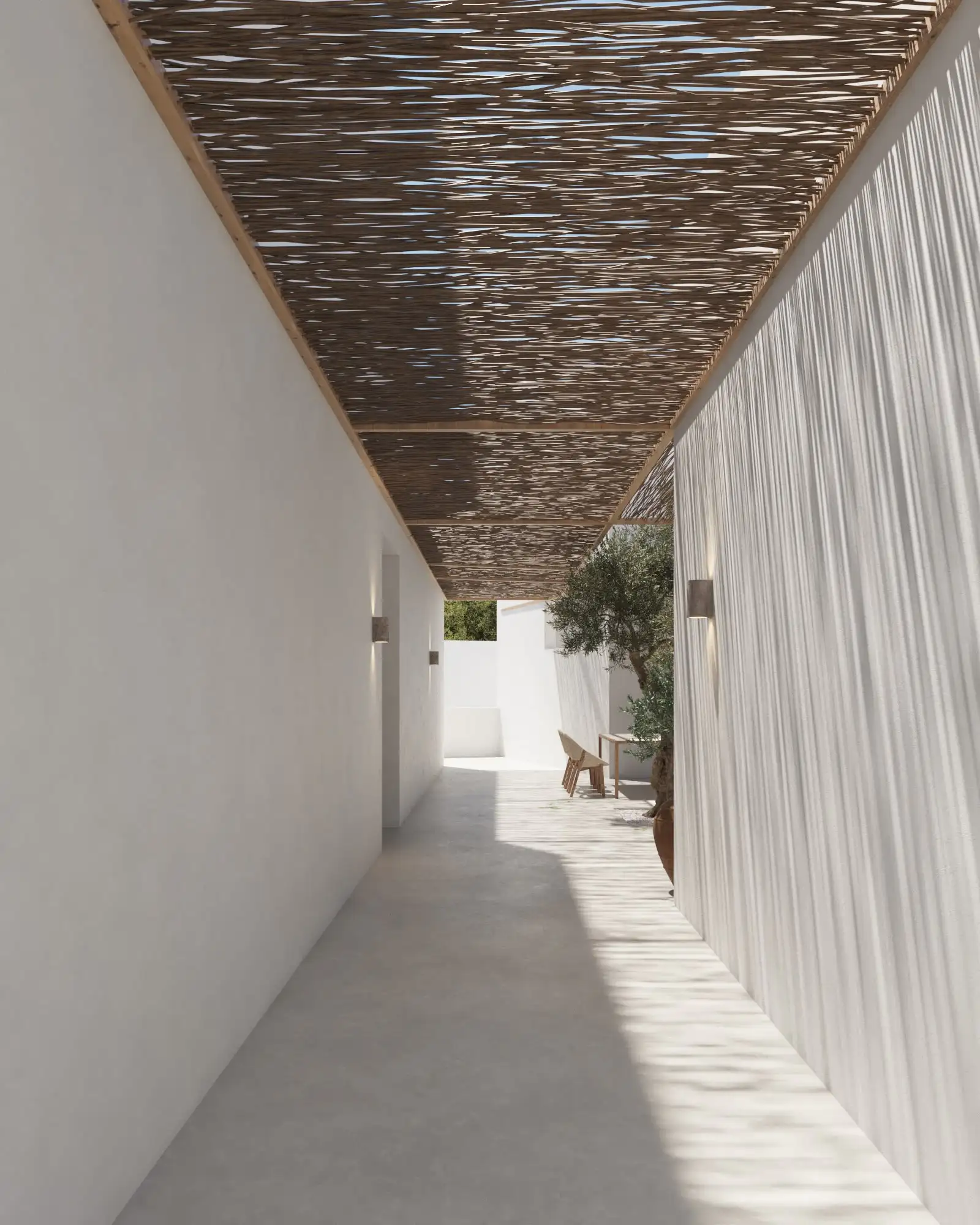 La materialidad del proyecto responde al carácter mediterráneo de esta zona, el cual se refleja tanto en el color de la fachada como en los materiales y vegetación utilizada en todos los espacios del proyecto.