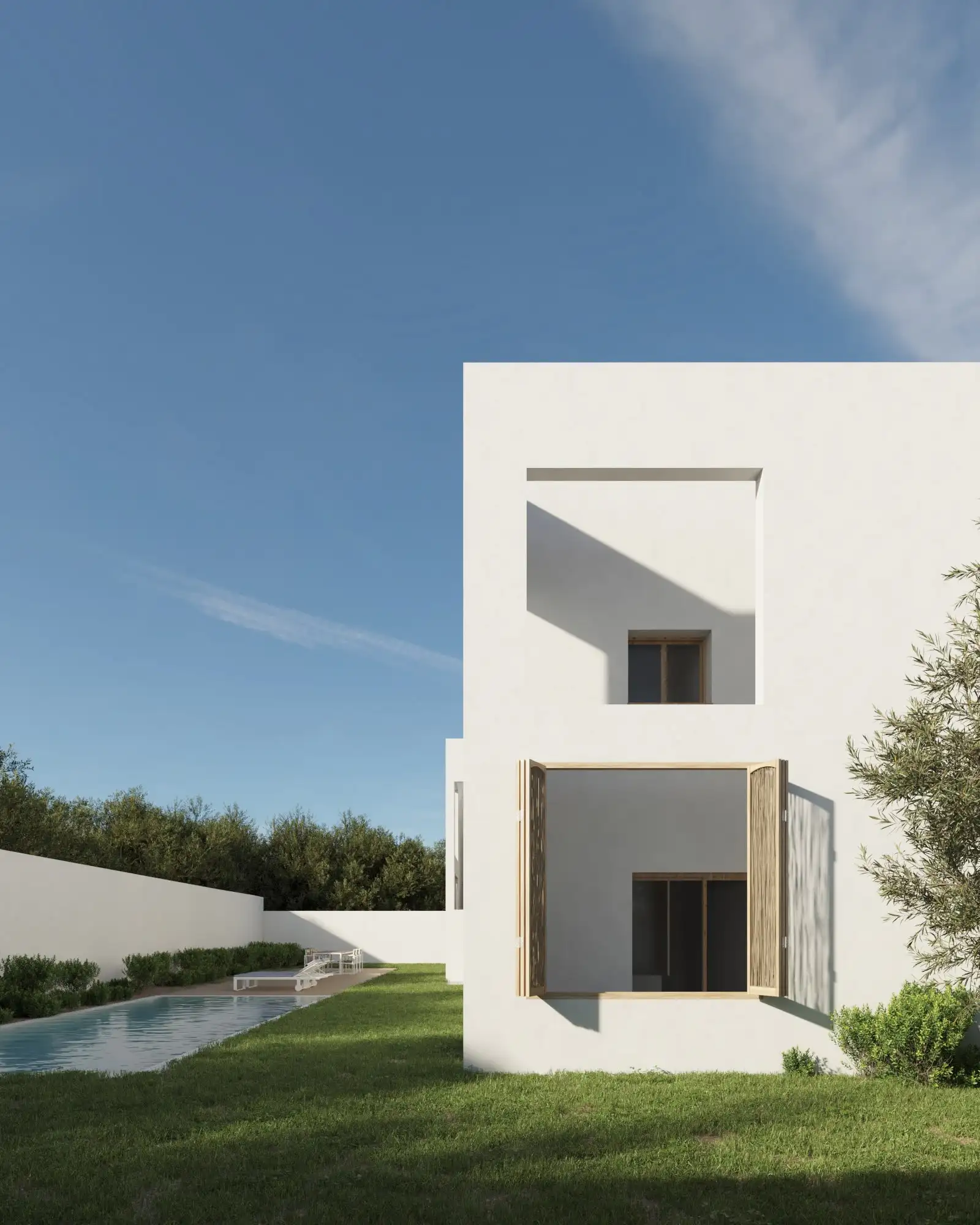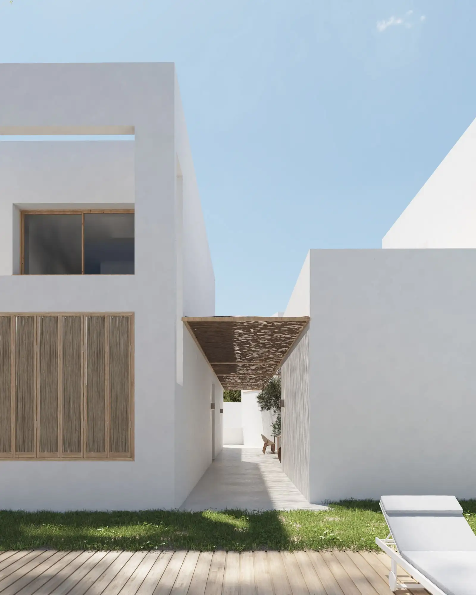 Puesto que se trata de una gran familia, esta nueva edificación se plantea como un conjunto de diferentes módulos independientes conectados entre sí mediante una zona común pergolada.