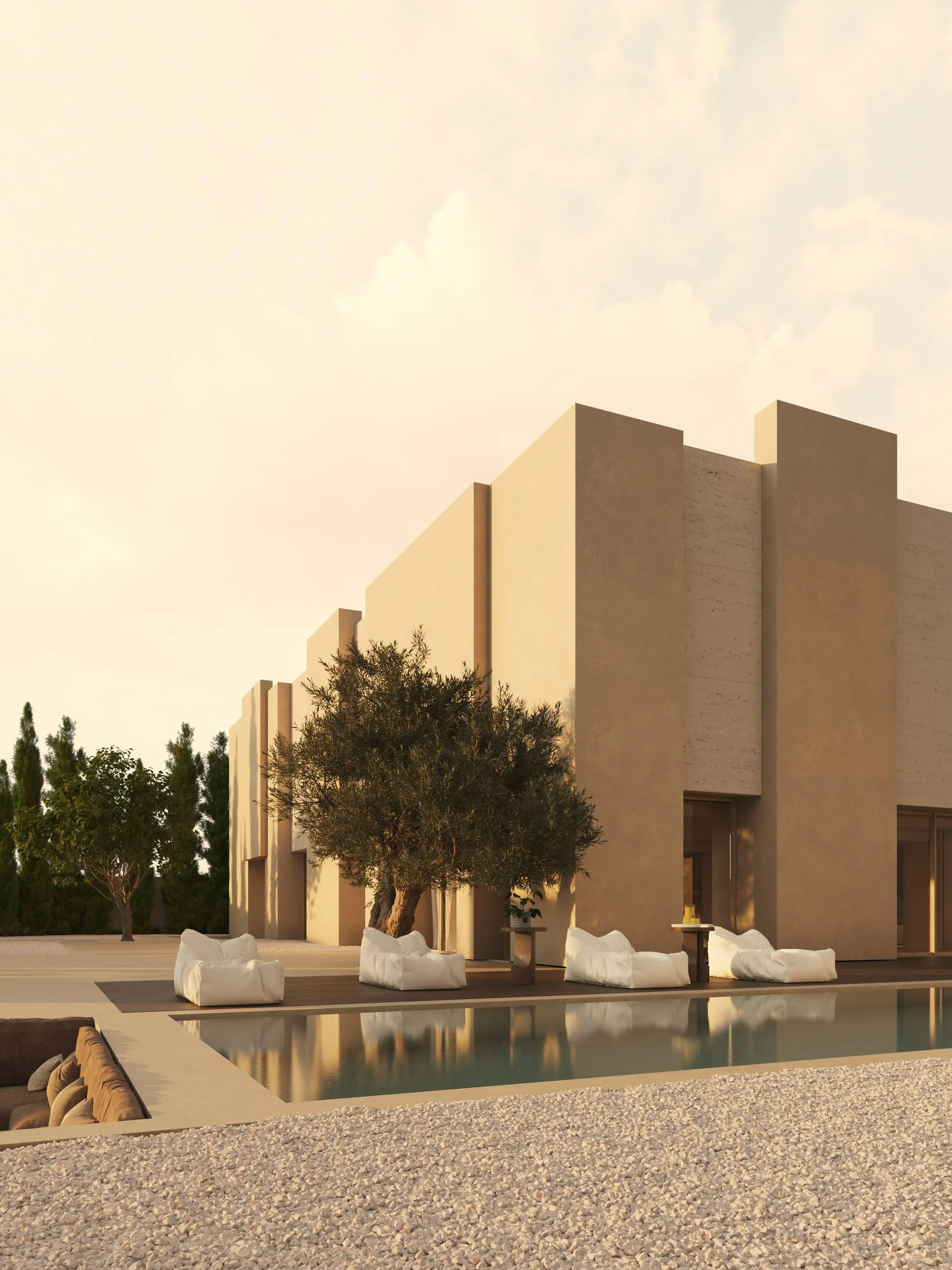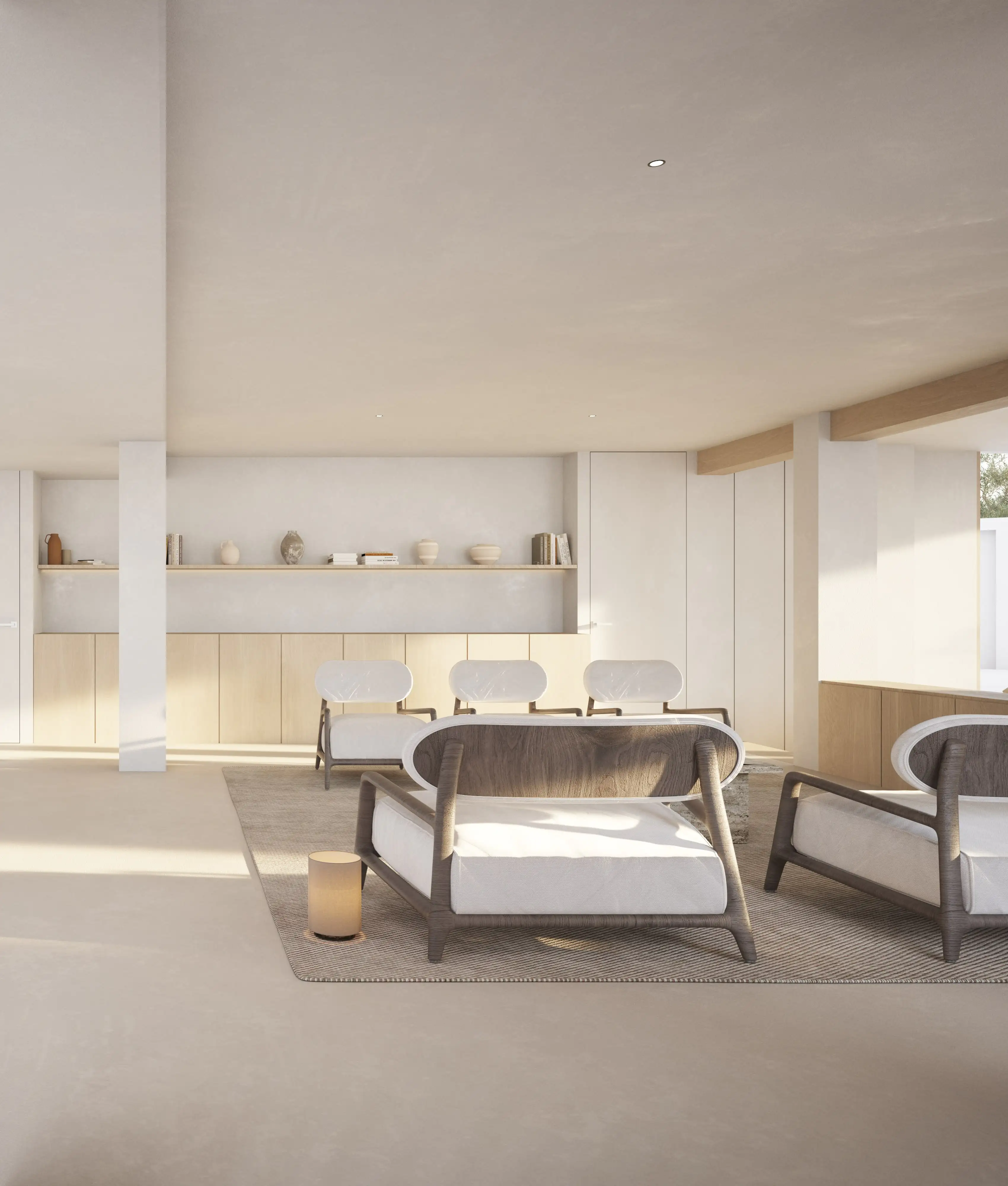 En planta primera se sitúan los espacios de noche, consiguiendo mayor privacidad en estas zonas, las cuales se conectan a una terraza exterior semicubierta con vistas directas al museo arqueológico.