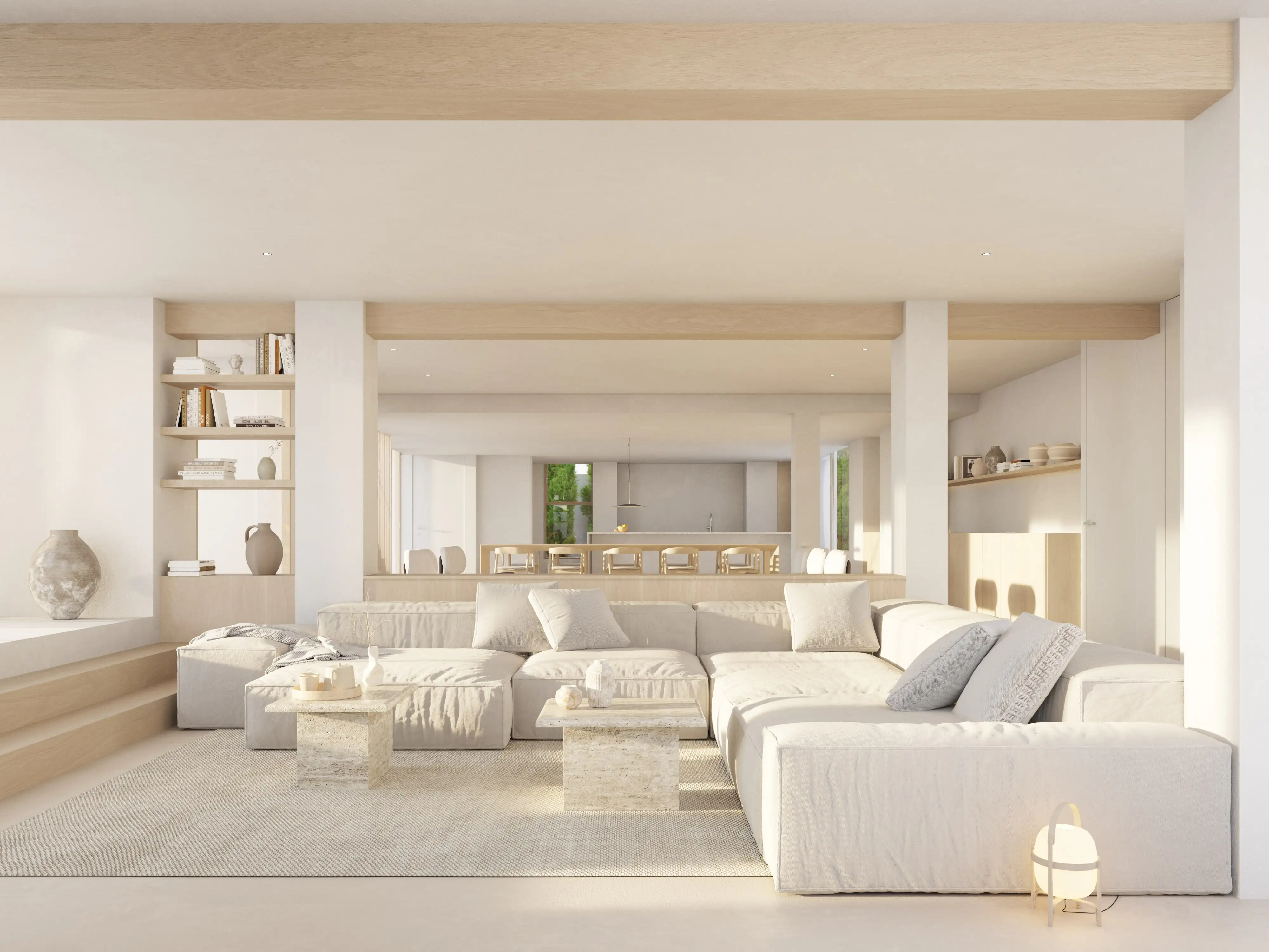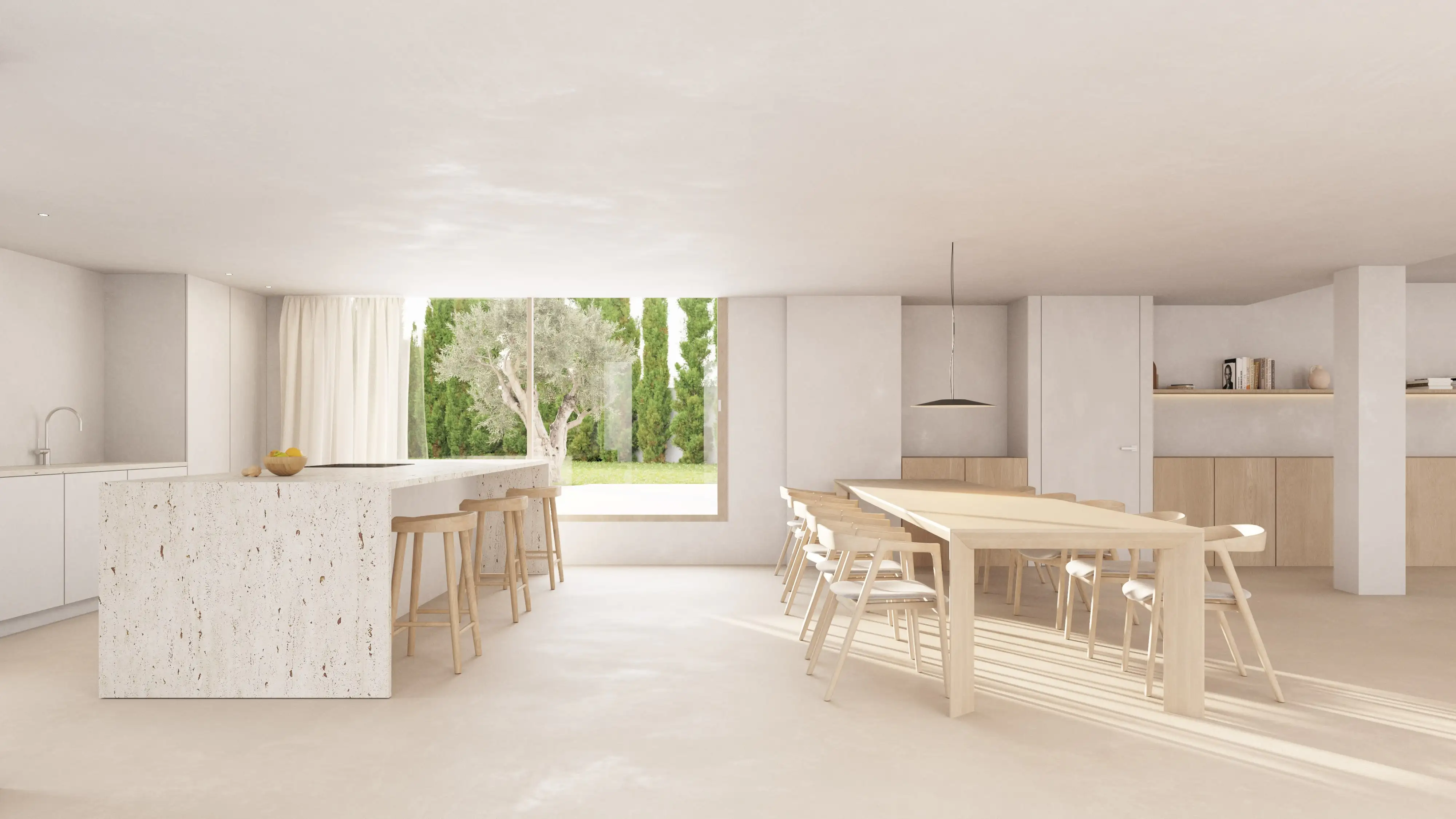 Con el fin de aprovechar al máximo la estructura existente y al mismo tiempo permitir que la vivienda se adapte a las necesidades estéticas y distributivas de los clientes, se sitúan en planta baja de forma diáfana los usos de día, permitiendo conectar los diferentes espacios de forma visual y conectándose a su vez con el espacio exterior circundante.